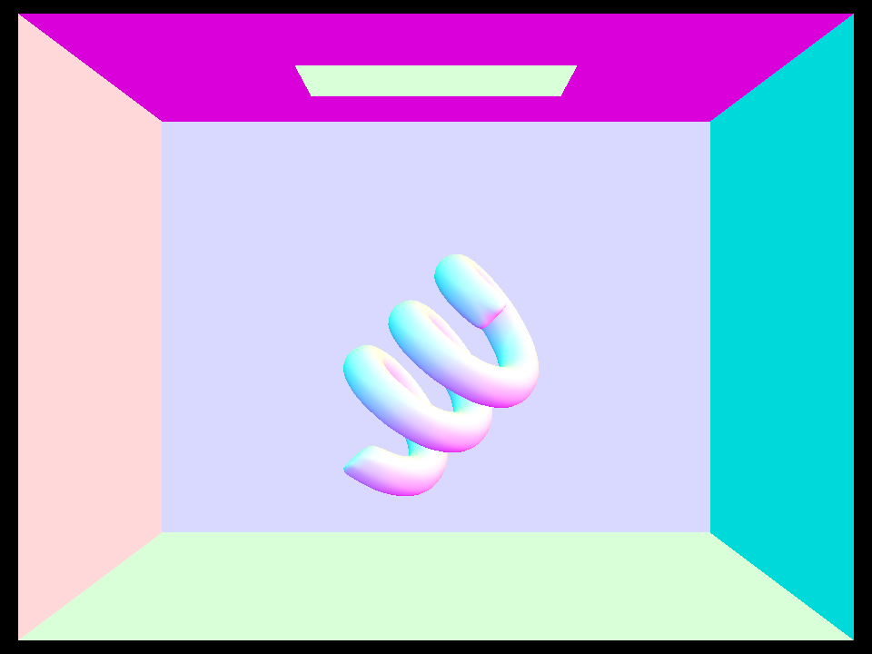 Finally, to put it all together, the intersection information is used in "est_radiance_global_illumination" to give the radiance where the ray intersects. We will come back to the implementation for "est_radiance_global_illumination", but for now it returns a default shading of an intersected primitive. Therefore, the images are not photo realistic. The reflecting colors look off, but we will improve the image with the following parts.