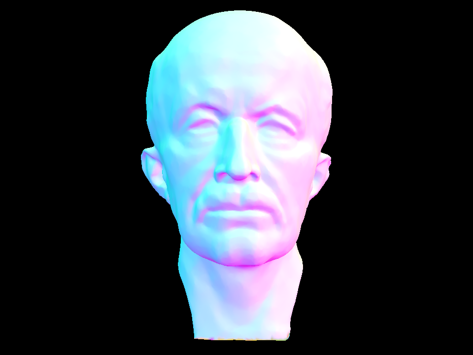 It took 0.0013 secs to construct the head BVH with all of the primitives. However, the renderer performed an average of 2932 intersection tests per ray! That is a lot! The figures below represent the bound with the BVH and the same rendering with the full construction of the BVH.