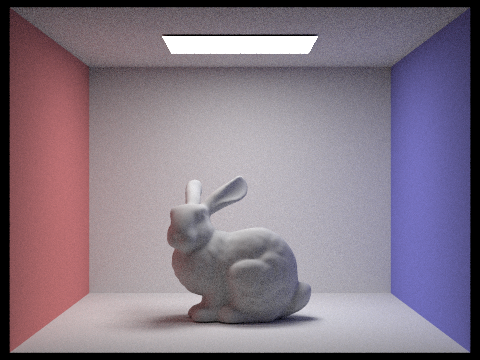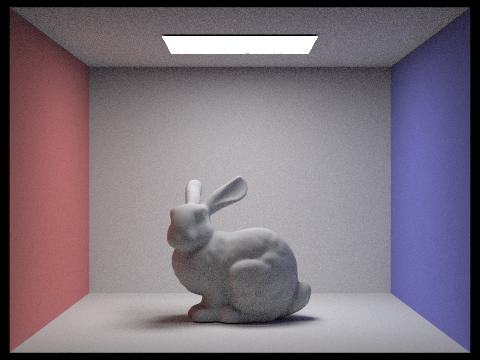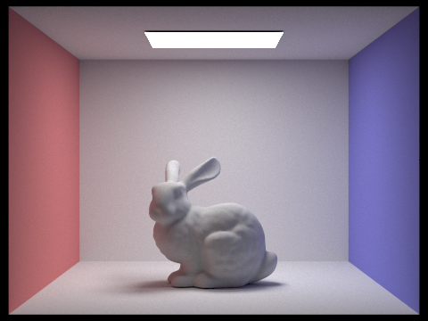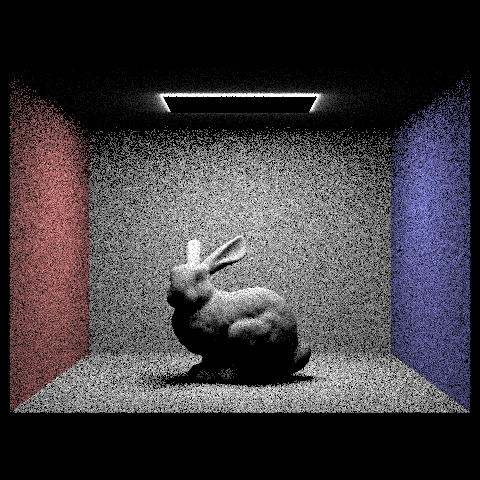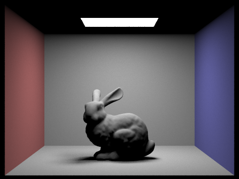 We can see that the indirect lighting is more of an ambient lighting that fills in the shadows with realistic, reflected light. For the model, it filled in some of the hidden parts that were not directly in the light. Why not run experiments then on the "max_ray_depth" to see the difference if we increase this value. For this, we use the bunny scene.