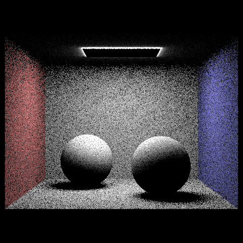 However, as we can tell by the images, calculating direct lighting using uniform hemisphere sampling via Monte-Carlo estimation is pretty noisy. The overall reason for this is because we are sampling uniformly in the hemisphere, without any regards or focus on the actual light we want to calculate. Importance sampling, as the name suggests, samples the important directions of incoming light such as directly from light sources. It is a way of reducing the variance from the Monte-Carlo estimations, since it tries to concentrate on regions of the scene that would contribute the most towards the total incoming light. From these areas, more samples are taken. Mathematically, it also means we choose our probability density function wisely for each light source. In the Monte-Carlo estimation, we set the pdf to be (1 / 2* PI), which corresponds to the hemisphere. But if we calculate a the correct pdf, one that better, mathematically, represents the function of light coming in, we will reduce the variance. In other words, importance sampling does not use uniform sampling but instead chooses sampling more based on the integral of incoming light, what was originally supposed to be estimated by Monte-Carlo integration.