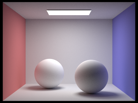 I am going to use three functions: "zero_bounce_radiance", "one_bounce_radiance", and "at_least_one_bounce_radiance". "zero_bounce_radiance" is the light coming straight from light source to the camera, since it doesn't hit any surface. "one_bounce_radiance" is basically just our direct illumination since it deals with light only hitting one surface before hitting the camera. "at_least_one_bounce_radiance" is the recursive procedure that first adds the result of "one_bounce_radiance", then proceeds to recurse, if needed. Before we cast any rays, we set the ray.depth of sample rays through a pixel to be "max_ray_depth", a fixed number for recursing for now. We also make a continuation probability value of 0.7, which means that if we were to flip a coin with probability 0.7 of being heads, heads would mean to continue recursing if r.depth > 1, where r is the current ray we are dealing with. We also recurse if our max_ray_depth is equal to r.depth and max_ray_depth is > 1, which will garuntee that we recurse at least one. If we are to recurse, then using a pdf, an incoming direction "w_in" generated by "isect.bsdf->sample_f()", we then construct a new ray using the "w_in" but converted to world coordinates, and we set its depth to be the current ray's depth minus 1, so that we may eventually stop if we reach the maximum bounce limit. Finally, if this ray intersects with the scene, we add our recursive call times the cosine and BSDF factor, divided by the PDF and by our continuation probability, cdf. Finally, in our global illumination function, we add the "zero_bounce_radiance" and the "at_least_one_bounce_radiance". Below are some results.